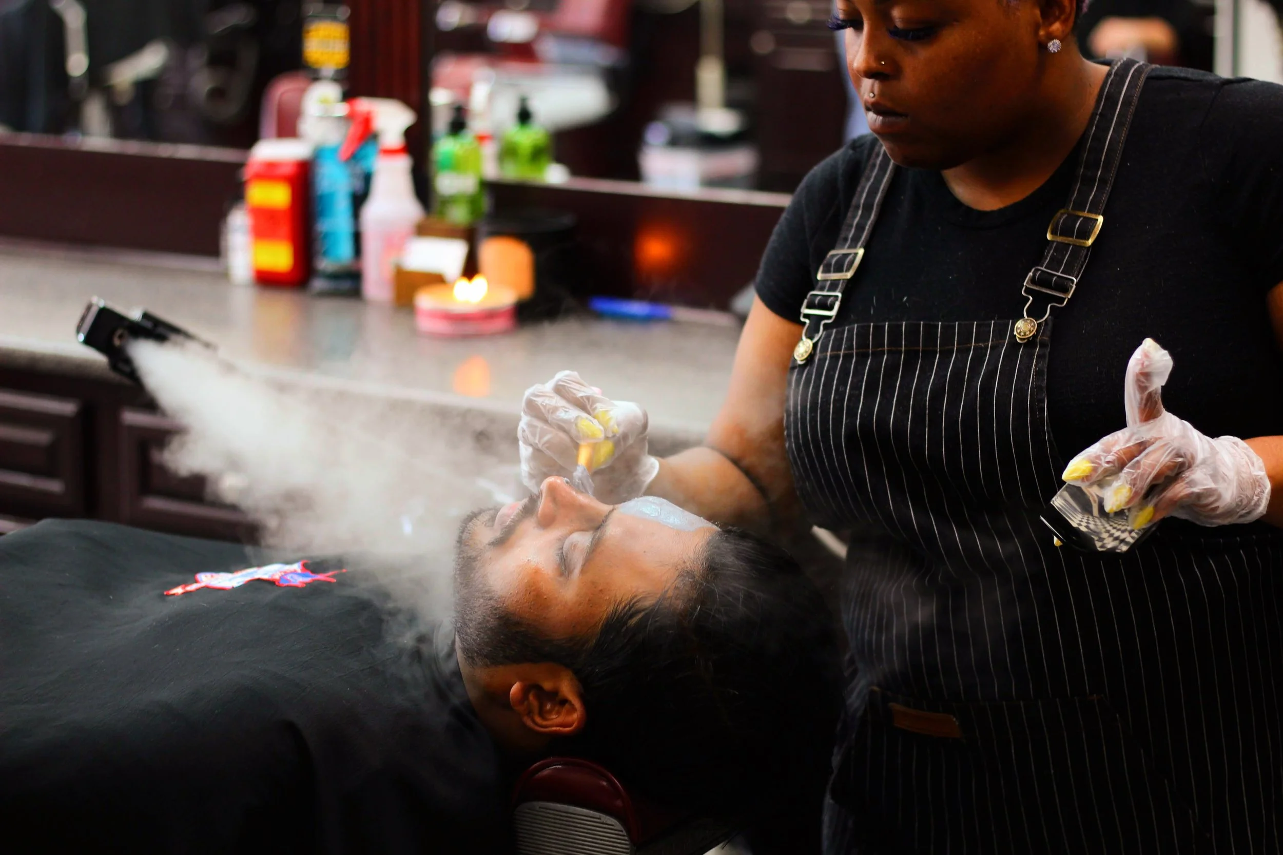 따뜻한 타월 찜질과 스트레이트 레이저로 완성하는 전통 면도. 부드럽고 매끈한 피부를 경험하세요.